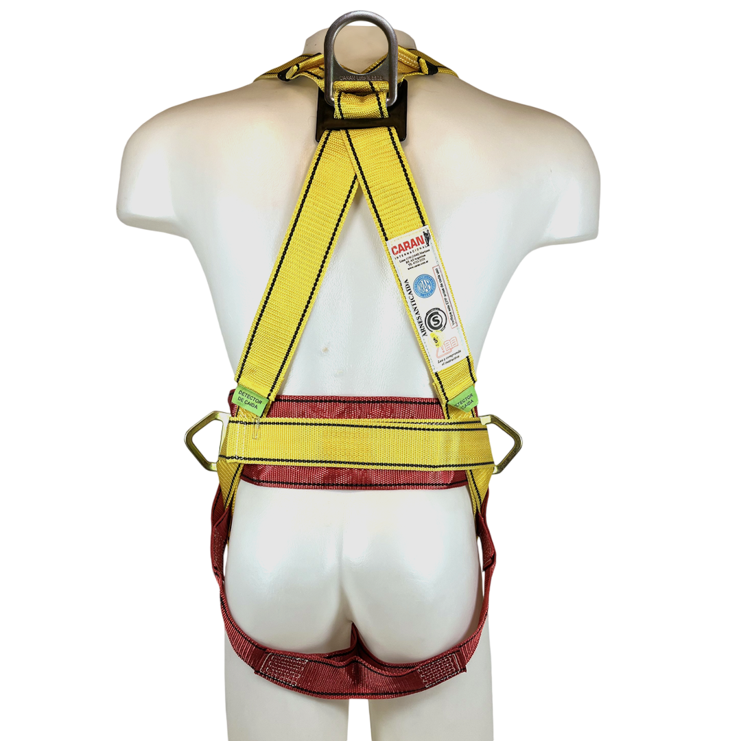 El CARAN CR 04 es un arnés ergonómico diseñado para trabajos en altura, planos inclinados y escaleras verticales. Combina funciones de detención de caídas con sujeción y posicionamiento mediante una estructura de bandas sintéticas de alta tenacidad y costuras reforzadas.