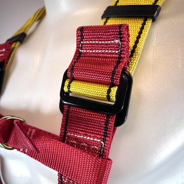 Ajuste y seguridad: Cuenta con cinco regulaciones rápidas (hombros, piernas y cintura), detector de caídas y diseño bicolor para facilitar su colocación.