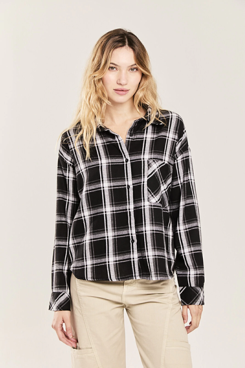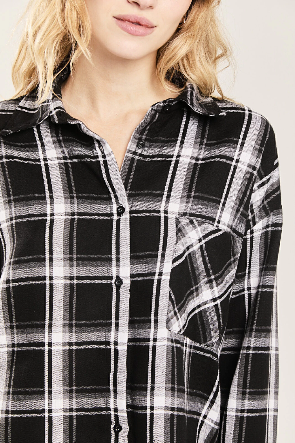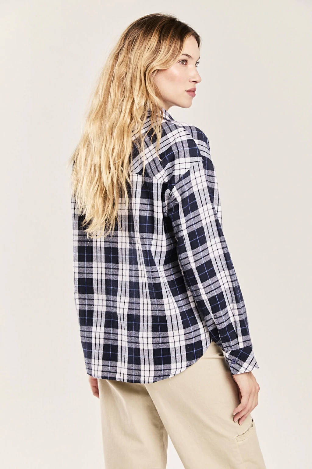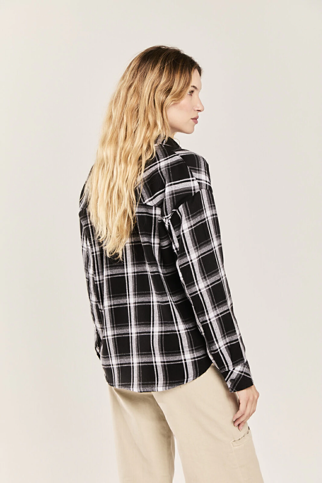 Camisa oversize manga larga de viyella con bolsillo en delantero izquierdo.