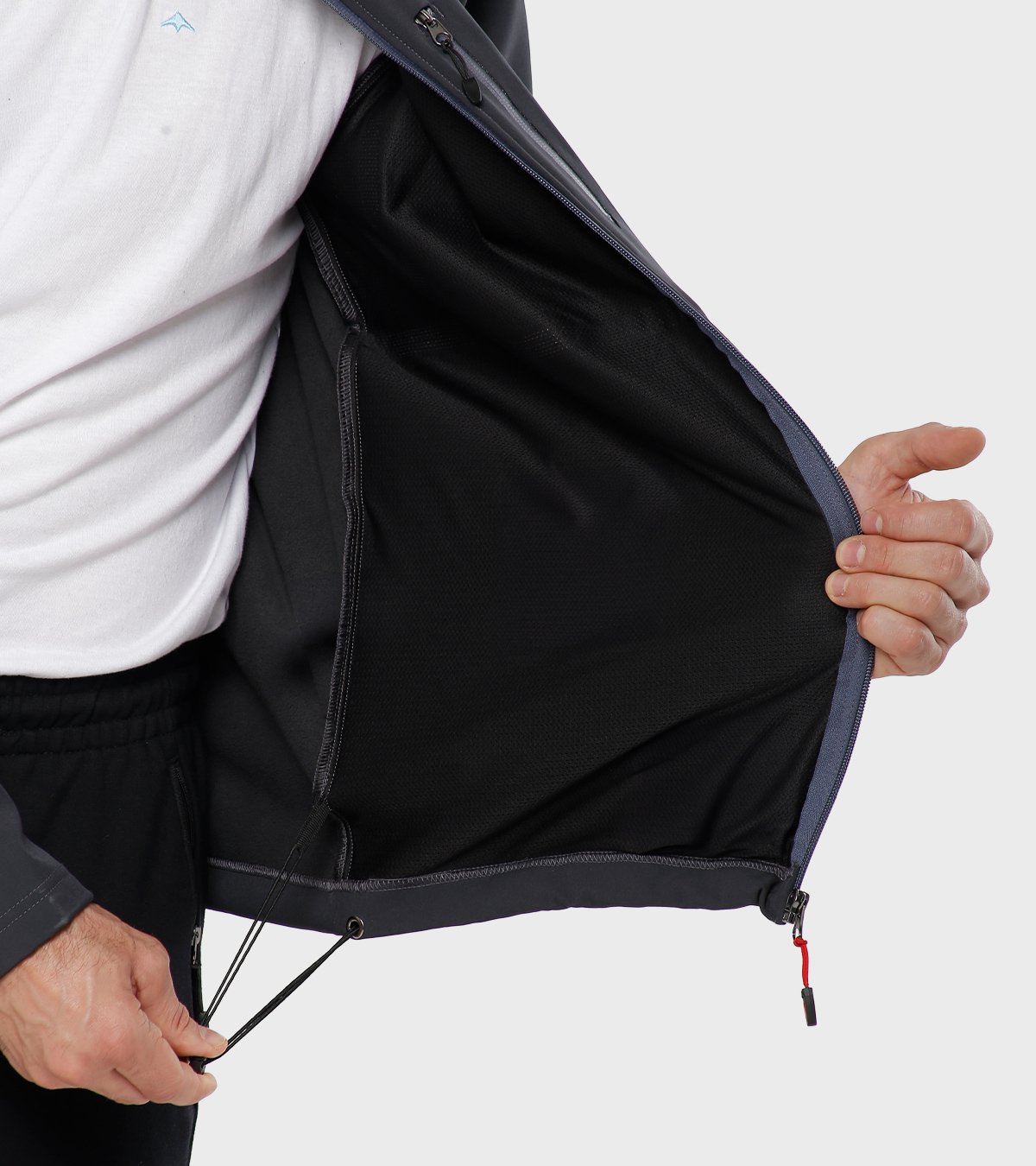 TELA EXTERIOR: Shark Skin®. Soft shell tricapa, con membrana impermeable/respirable y muy buena repelencia al agua.