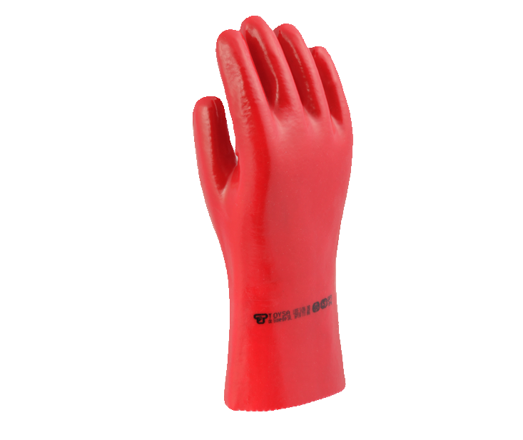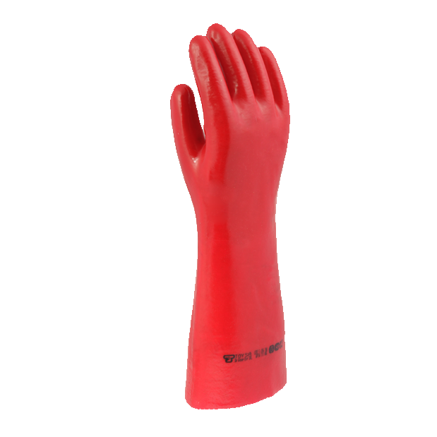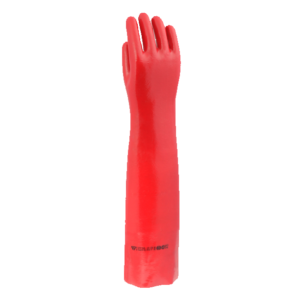 El guante de PVC es un producto de uso industrial que brinda seguridad a los miembros superiores del trabajador. Las áreas protegidas dependerán del largo del guante a utilizar que van desde el modelo corto para protección de manos, hasta los guantes de 70cm de largo que protegen la totalidad del brazo, utilizado para profundidad en la inmersión. Posee una importante capacidad mecánica fundamentalmente en lo referente a resistencia a la abrasión y al desgarro. Protege la piel de los riesgos químicos de los compuestos utilizados en el lugar de trabajo fundamentalmente en uso de Hidrocarburos, Ácidos y Bases.