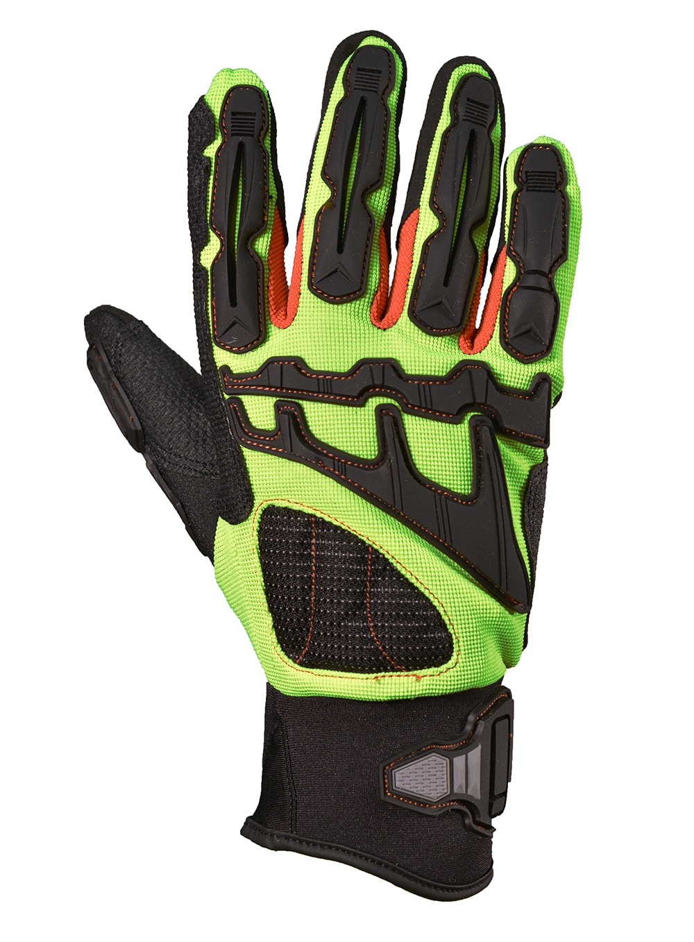 Refuerzo de neopreno en palma y zona dactilar. Protección Antishock en dorso de dedos y metacarpo.