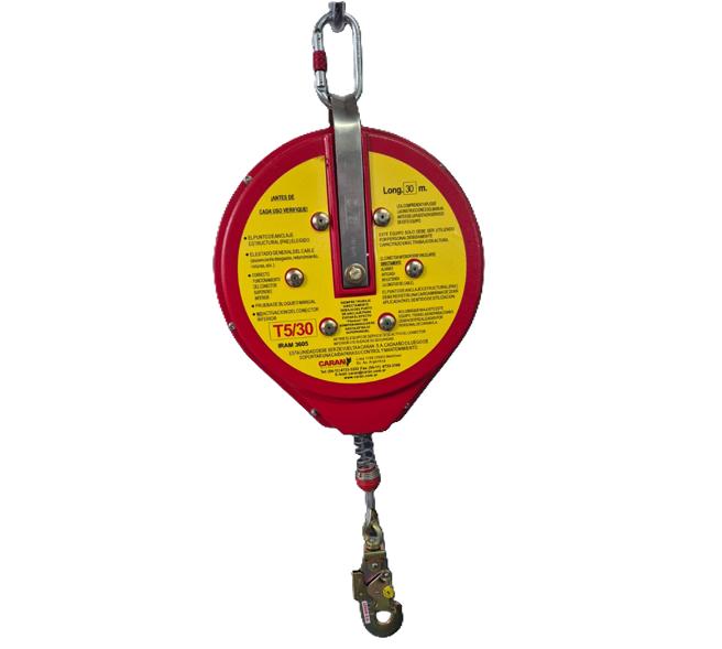 • Dispositivo anticaída con elemento de amarre retráctil de 30 m de longitud destinado a facilitar el desplazamiento del usuario en una amplia zona de trabajo brindándole protección contra eventuales caídas de altura. En caso de caída el equipo bloquea por aceleración del elemento de amarre retráctil.
